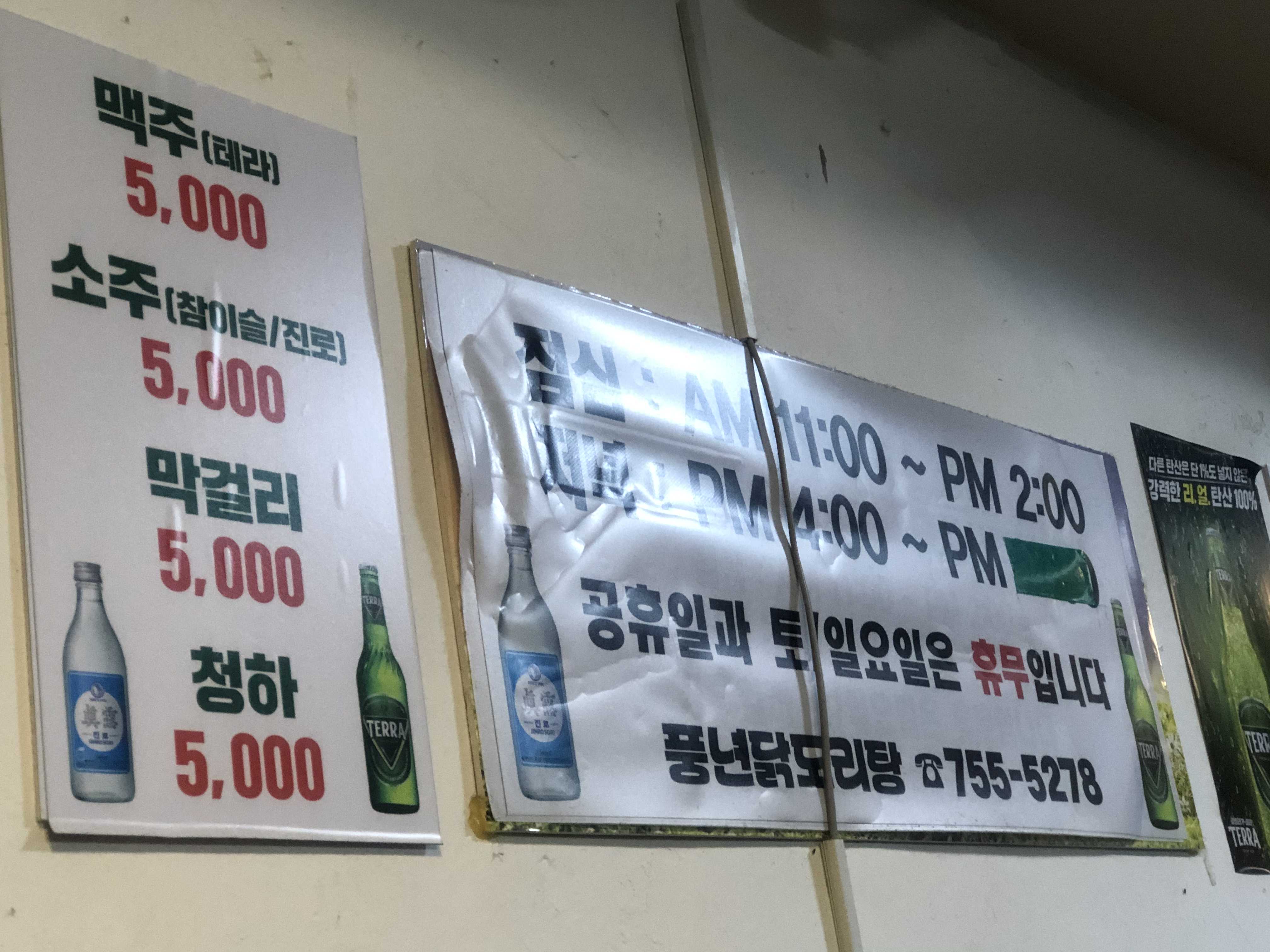 메뉴판. 술. 영업시간